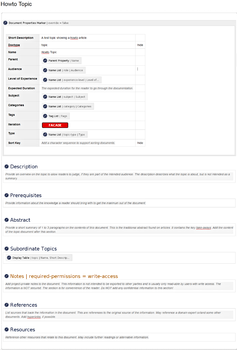 The projectdoc Toolbox provides tools to reduce the noise in documents. The Section Macro defines the structure of a document but do not show up if empty. It can also be hidden if the section is not yet ready to be displayed to the reader. The rendering of the title can be suppressed for sections whose function is obvious from the location in the document in order to reduce decoy text. Properties within the Document Properties Marker Macro also do not show up if there is no value (or can also be hidden). Properties may also control which sections are shown.