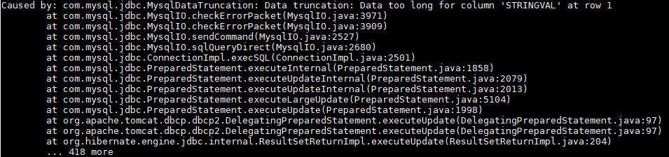 Data truncation: Data too long for column 'STRINGVAL' at row 1