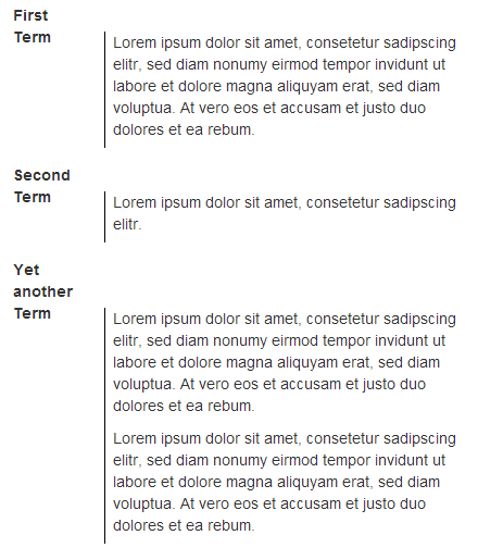 The class to add to the definition list. This is usually the only class you want to provide to select the formatting style